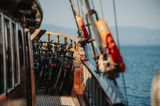 Auf einigen Strecken stehen Fahrräder, E-Bikes und Mountainbikes zur Verfügung – perfekt für Paare oder Freunde mit unterschiedlichen Fahrvorlieben, die gemeinsam auf derselben Yacht übernachten möchten.