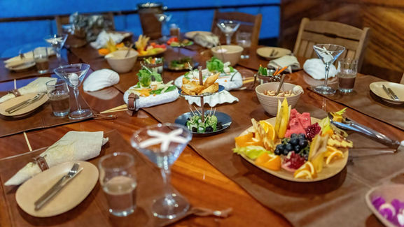Die Mahlzeiten an Bord werden täglich frisch vom Schiffskoch zubereitet. Er serviert Frühstück und je nach gewählter Route ein bis zwei warme Mahlzeiten. Einige Touren beinhalten Halbpension, andere ein oder zwei Tage Vollpension – Details erhalten Sie nach Eingang Ihrer Anfrage. Unsere Menüs spiegeln die regionale Küche wider und sind auf die Bedürfnisse aktiver Gäste abgestimmt. Bitte informieren Sie uns im Voraus über eventuelle Ernährungswünsche oder Allergien. Wir bemühen uns, alle Bedürfnisse zu berücksichtigen, können dies jedoch nicht immer garantieren. Gäste mit mehreren Unverträglichkeiten bitten wir, eine Liste der erlaubten Lebensmittel bereitzustellen, damit der Koch entsprechend planen kann.